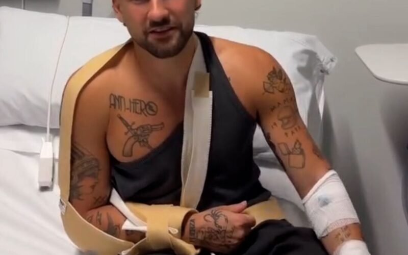 El artista, que ha intentado seguir el bolo tras el accidente, se ha roto los ligamentos del hombro y tendrá que ser operado de urgencia