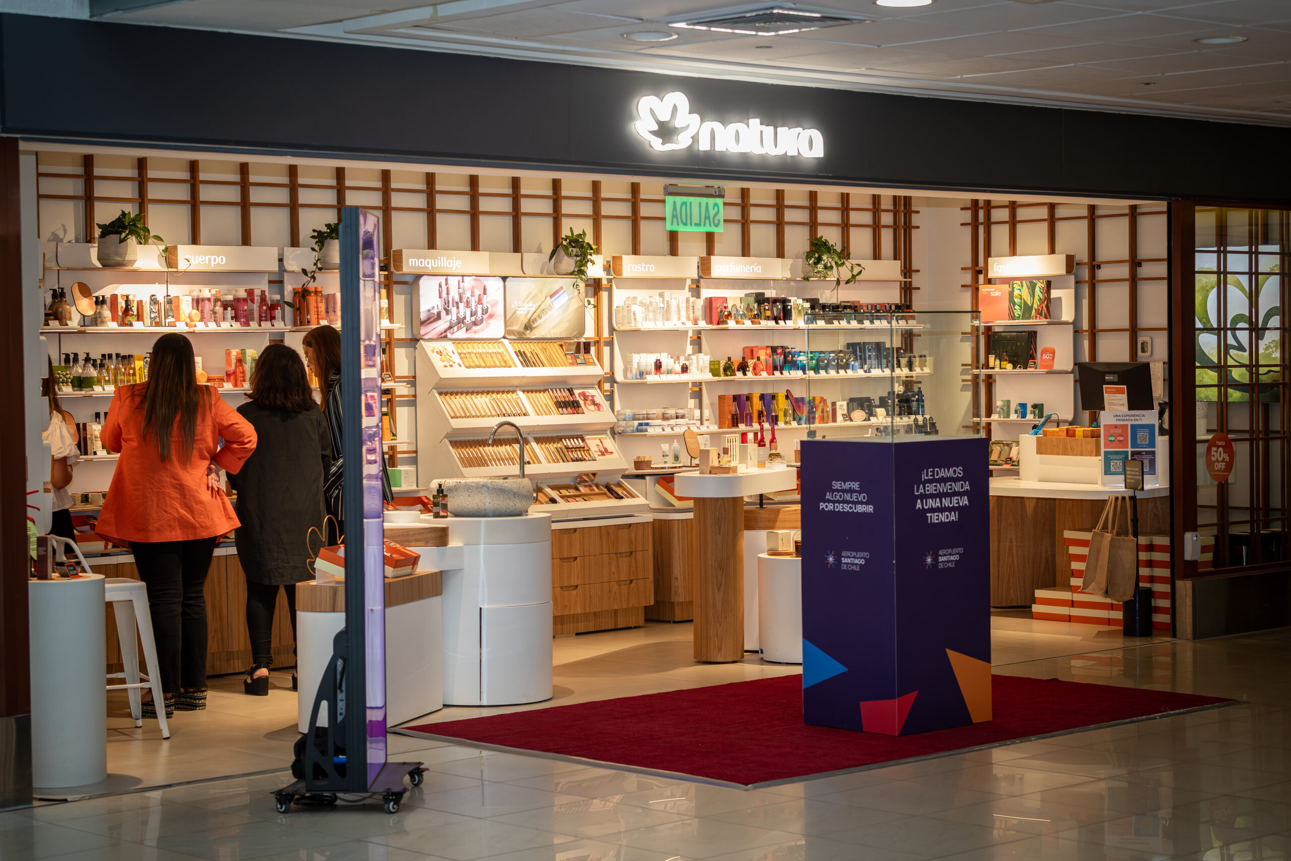 En el marco de su sólido plan de expansión regional, Natura anunció la apertura de su nueva tienda en el Aeropuerto Santiago de Chile. El espacio, situado en el Espigón B (sector nacional), abrió sus puertas al público en diciembre de 2025, convirtiendo a Chile en el mercado pionero para probar este formato inédito antes